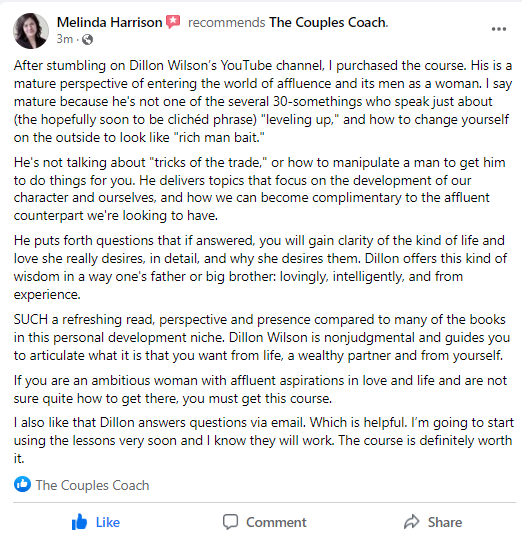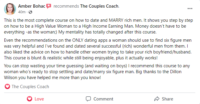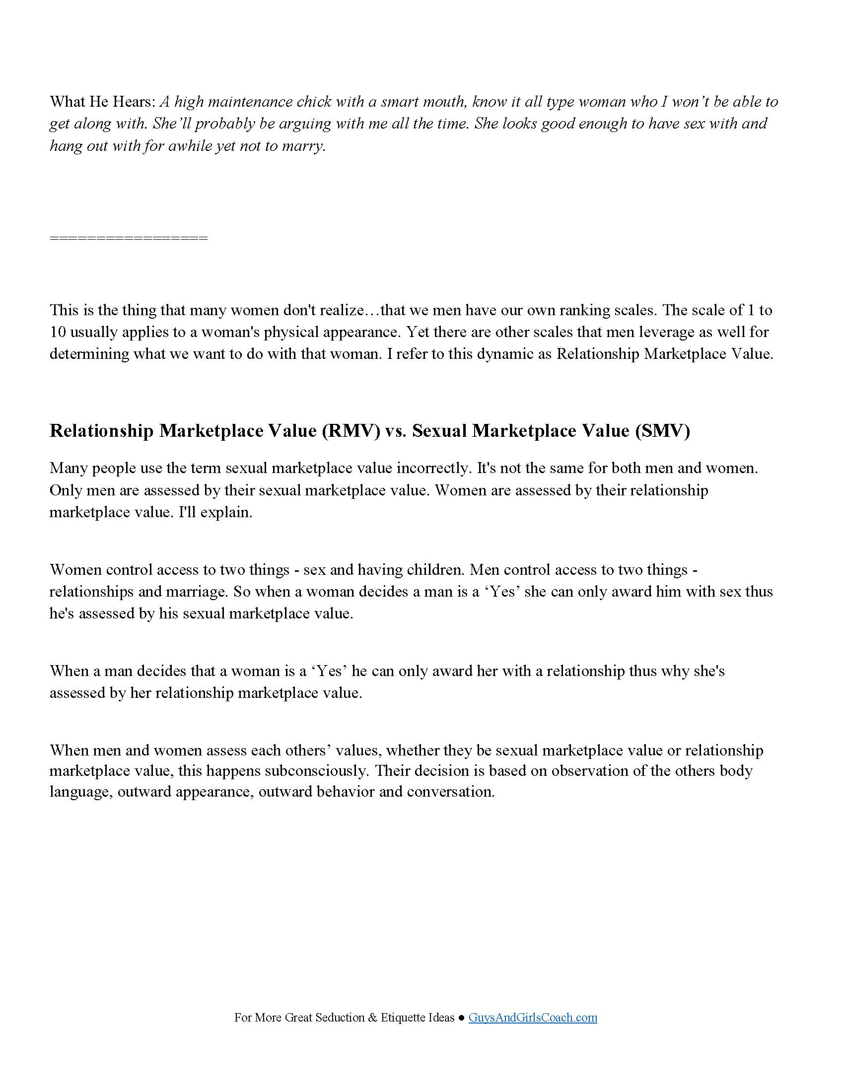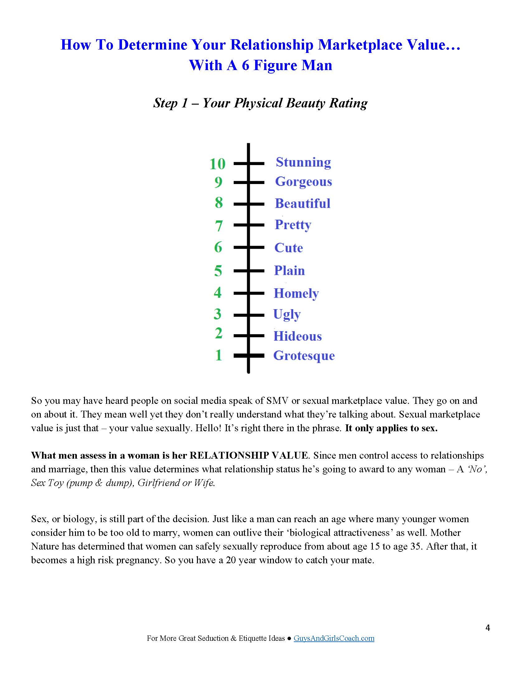 2. Women At The TOP Of Their Game Discover firsthand how women who specifically train and prepare for dating and marriage to 6 Figure Men - how they dress, look, walk, talk and ensure that they stand literally head and shoulders above all of other women when going after 6 Figure Men for dating and marriage.